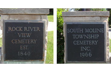 South Moline Township Cemeteries: Rock River View Cemetery est. 1840 and South Moline Township Cemetery est. 1966.